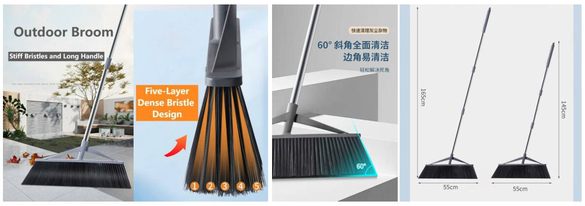 This broom is designed with stiff PET bristles and a 60° angled head, allowing it to remove heavy dirt, gravel, grass, and wet leaves efficiently on patios, driveways, garages, and gardens.